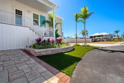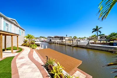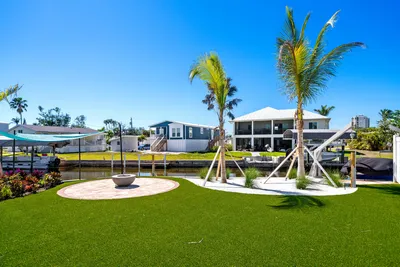 What began as a blank waterfront lot was completely reimagined into a vibrant tropical retreat. We built a full paver deck along the seawall, added synthetic turf for a lush, low-maintenance green zone, and created multiple outdoor living spaces with modern shade sails and custom landscaping. Palms, pops of color, and layered textures bring the entire space to life, transforming it into the ultimate canal-front getaway.