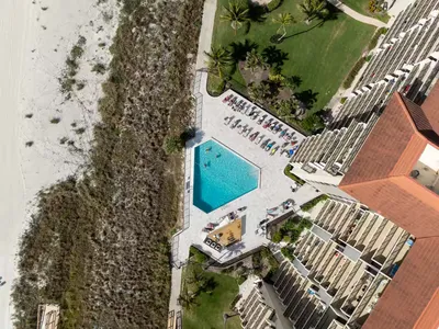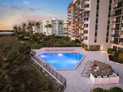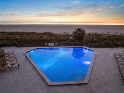 This sleek coastal pool renovation was designed to complement a high-rise beachfront condominium. The project features clean lines, a modern geometric layout, and upgraded pool lighting for an ambient evening experience. The expanded paver deck offers ample lounge space with panoramic ocean views, creating a resort-like escape for residents.